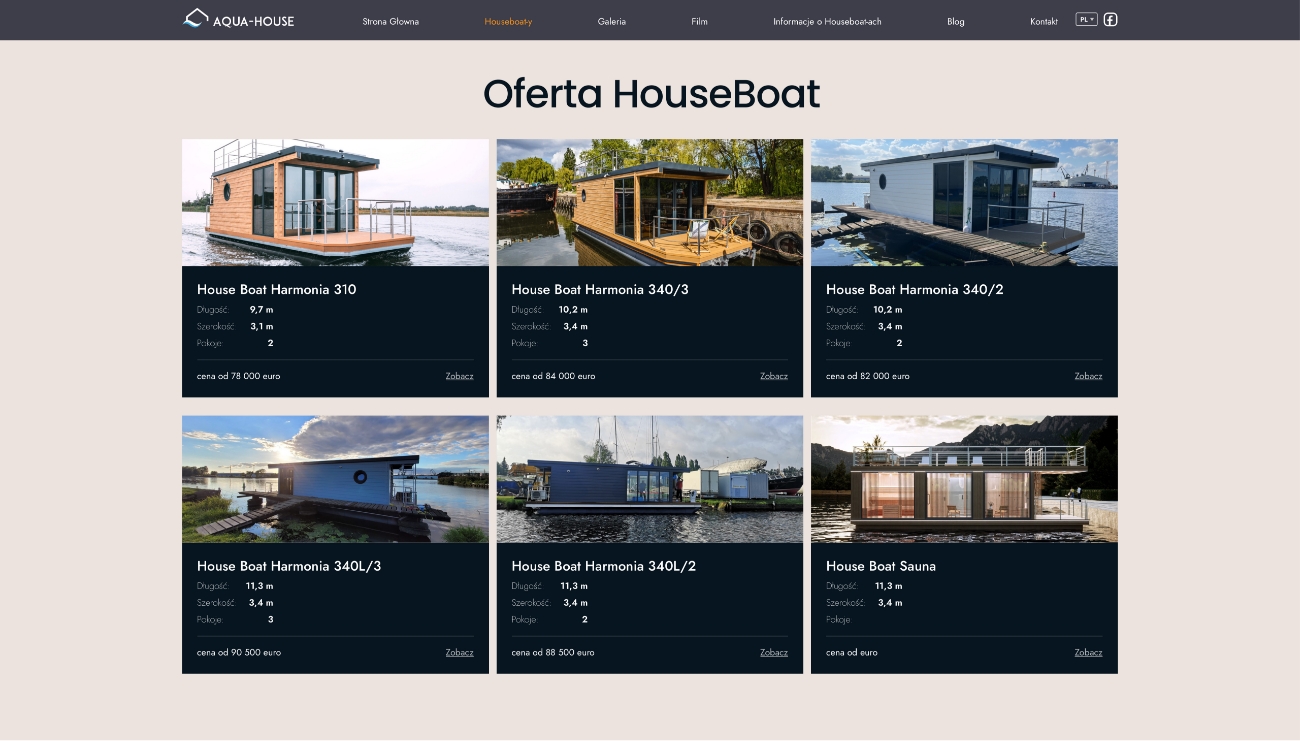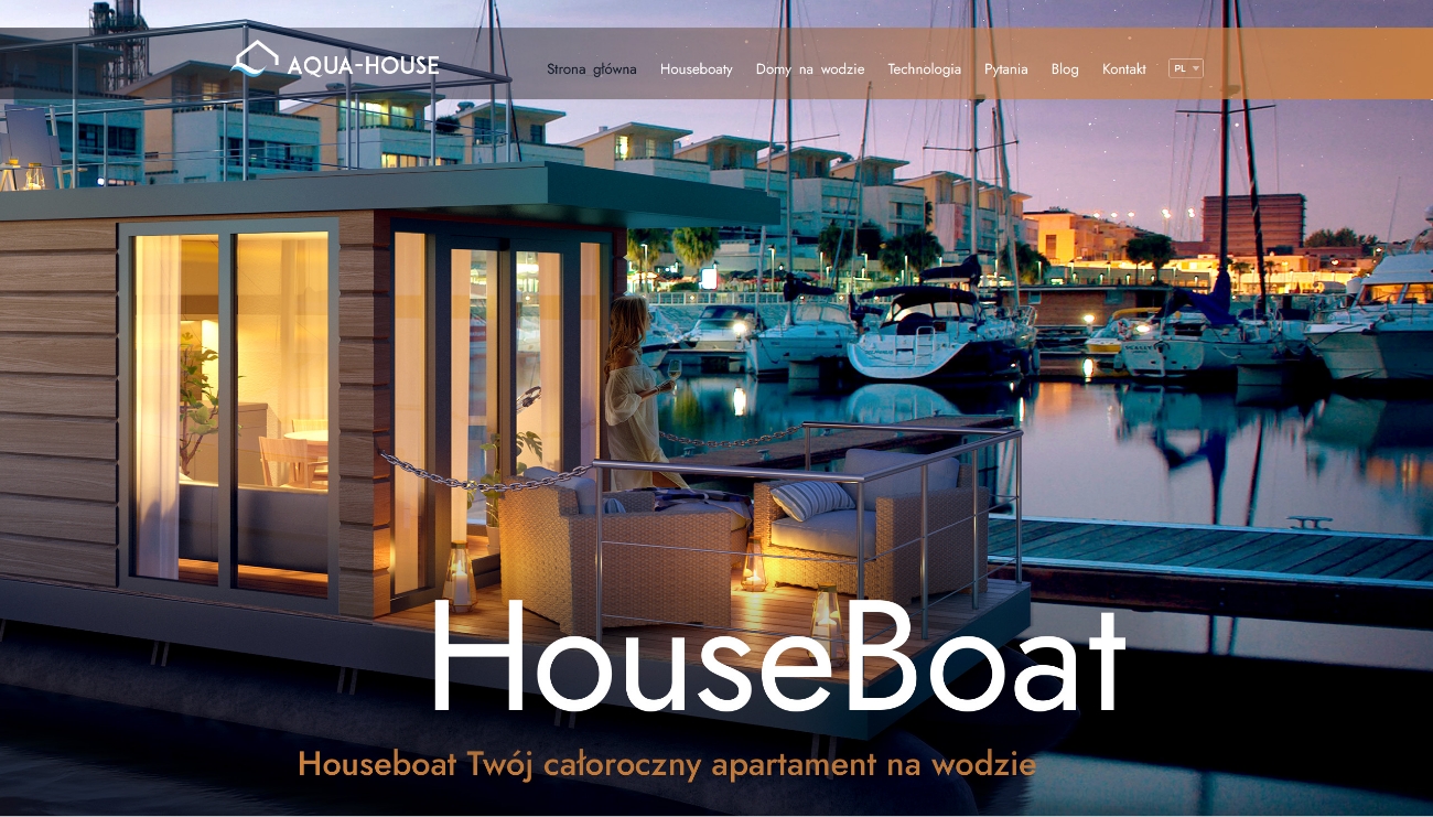 Prezentujemy stronę internetowa wykonaną dla firmy zajmującej się produkcją domów pływających na wodzie. Do naszych zadań należało opracowanie koncepcji utworzenia strony dla nowo powstałej firmy. Organizacja wykonania fotorealistycznych renderów, gdyż firma w momencie powstawania strony nie posiadała jeszcze realizacji. Wykonanie strony. Dodatkowo wykonaliśmy ulotki, cenniki i prowadziliśmy kampanie linków sponsorowanych.