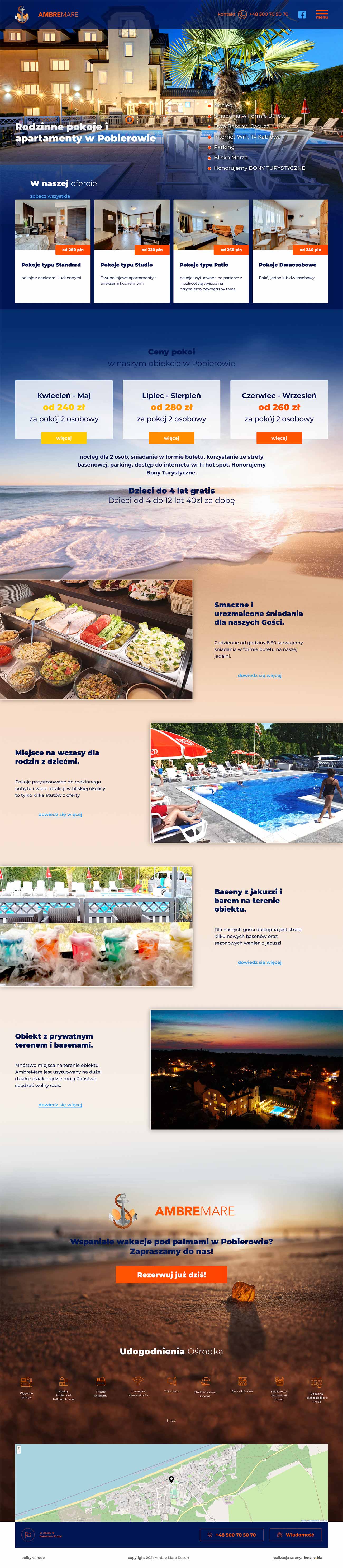 - wykonanie strony internetowej dla hotelu w technologii RWD zapewniającej dostępność strony www na telefonach, tabletach i komputerach,