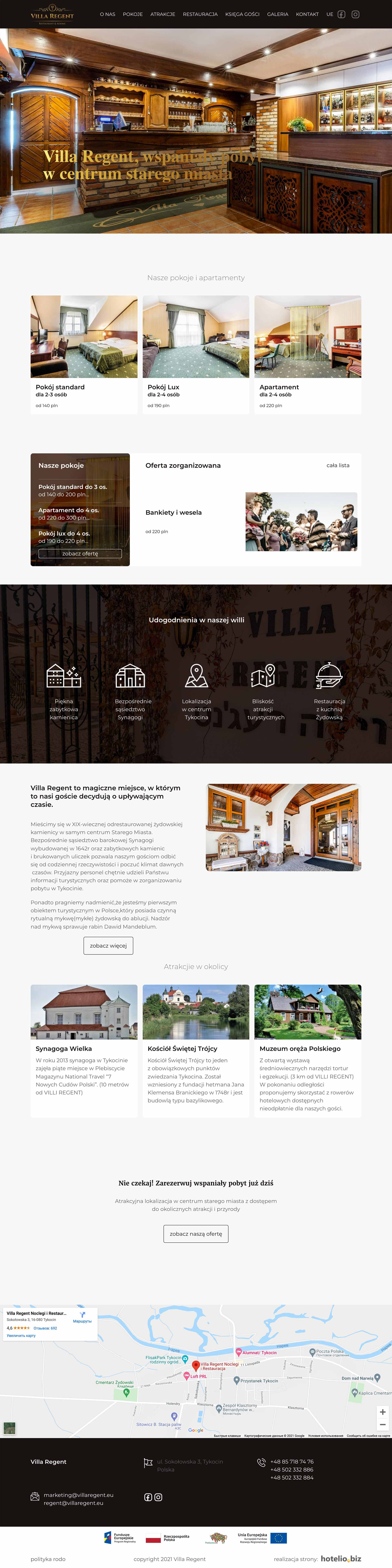 - zamieszczenie interaktywnej galerii zdjęć, prezentującej obiekt oraz pokoje i apartamenty,